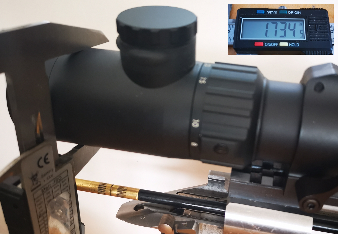 Measure with your vernier the distance from the bottom of the cleaning rod, to the top of the eyepiece.