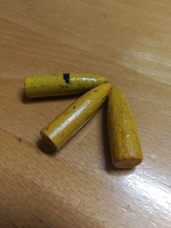 I cast the next batch from a bucket of reclaimed range lead, used two coats of polyester powder coat, and they were BHN 12. There was no visible leading in the barrel after 15 rounds, but the first few patches came out grey, and the barrel was clean soon after that.