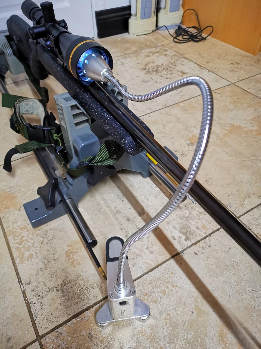 The brighter the lights, the further from the wall you can have the rifle, and the more accurate this method will be.