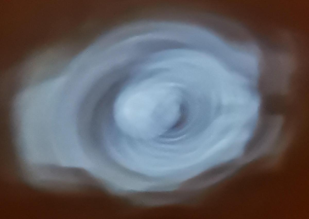 This picture shows the light pointing right relative to the bore. Moving the light left relative to the bore moves the shadow the opposite way.
