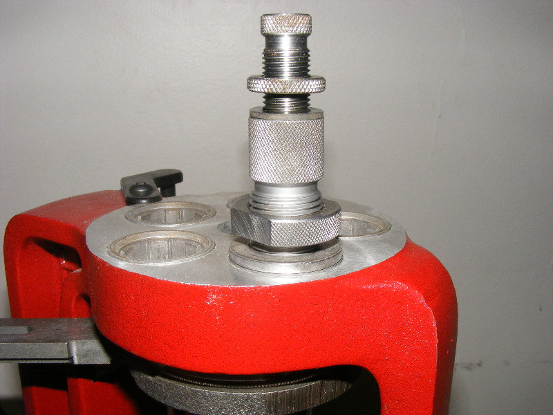 To begin, screw the die into the press. Unscrew the body as far as it will go without falling out, and then unscrew the bullet seating screw as far as you can as well. Notice this die has a lock ring on the bullet seating screw. When locked, it keeps your AOL fixed during the loading session. If you've ever wondered why your AOL varies during a session, or between the start and the finish, your die most likely does not have a lock ring there.