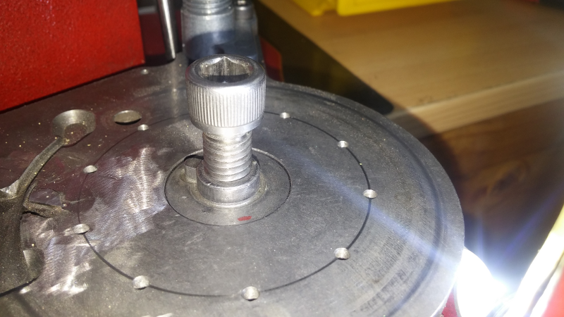 Tightening the hex bolt with a shellplate fitted moves the drive hub slightly above the level of the sub-plate. That small difference is the clearence available to the shellplate when rotating over the sub-plate.