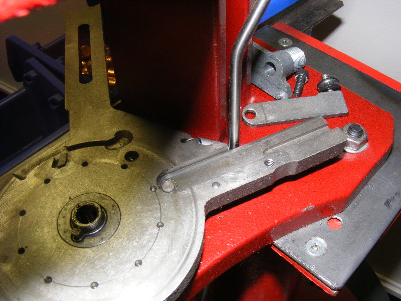 The primer transfer bar has a small roller on it. This needs to be changed betwen large and small pistol primers.