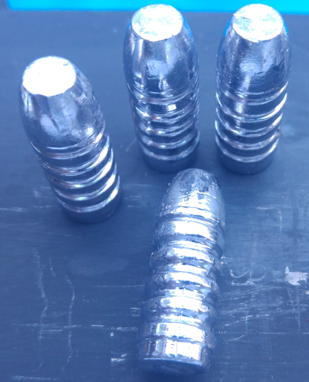 The gas burner settings need some practice. After melting, one ring of the burner was turned off, and the second ring to half. The lead was a bit cold, the bullets have visible ripples and fold in them.