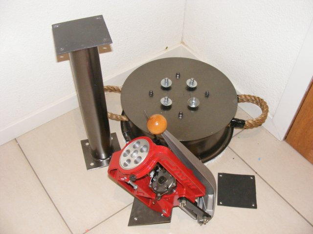 This shows the press with it's mount-plate being removed from the press stand. Note the plate below it which is the top of the stand,