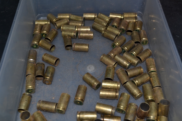 After decapping the brass, it goes into a sonic cleaner for 560 seconds. The mixture I use is made up of 2l hot geyser water (not boiling hot!), ΒΌ teaspoon citric acid, 50ml white vinegar and a good squirt of dishwashing liquid