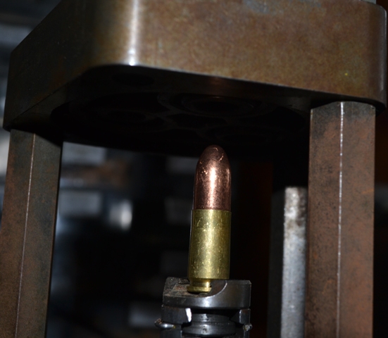 I am using a 147gr CMJ RN (Complete Metal Jacket, Round Nose) bullet from Frontier, as used by most sport shooters out there. Some prefer different weights of bullet, and other like different shapes of bullet. Whichever one you choose, make sure the COL is correct for your handgun. It should be the longest you can make it, but still be able for the round to go fully into battery with your handgun. A bit of experimenting is needed for each type of bullet you want to load. In my example, a COL of 29.4mm is preferred for my combination.