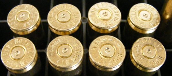These are the primers from the rounds tested. None show signs of excess pressure. All cases extracted easily. One PMP Large Rifle Magnum primer was a dud, and not the first time in PMP. Since then, the preferred primers are Federal 215.