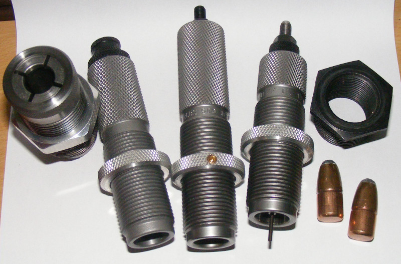 RCBS make 500 Jeffery dies. The large body press bushing is top right. A Factory Crimp Die is optional, but works very well for crimping, especially monolithics. That is a custom order from Lee.