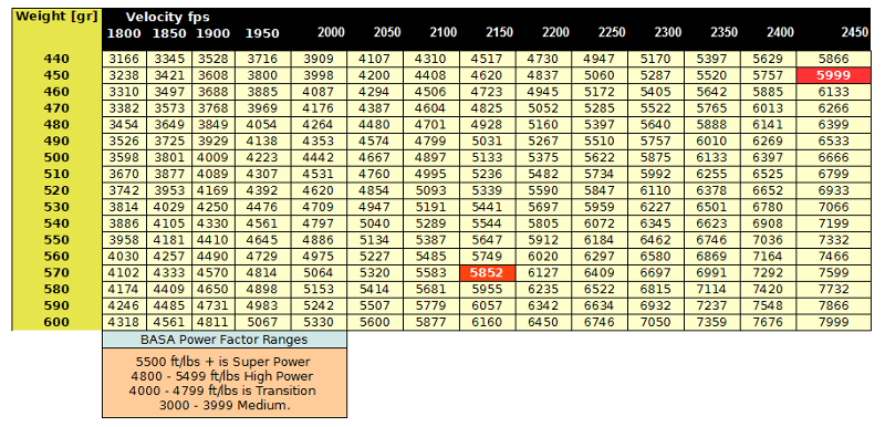 To make Ultra Bore power factor with a 570 bullet, a velocity of 2100 fps is required.