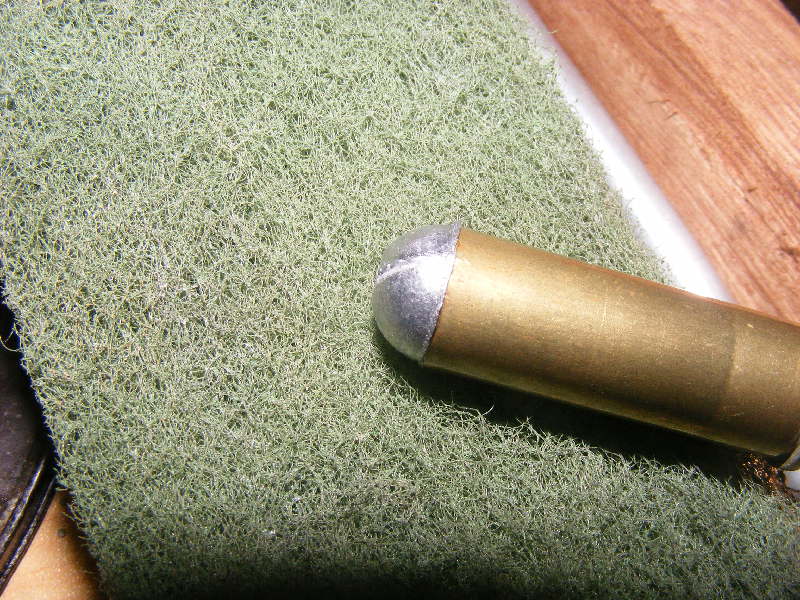Use a nylon pot scourer to clean the loaded rounds.