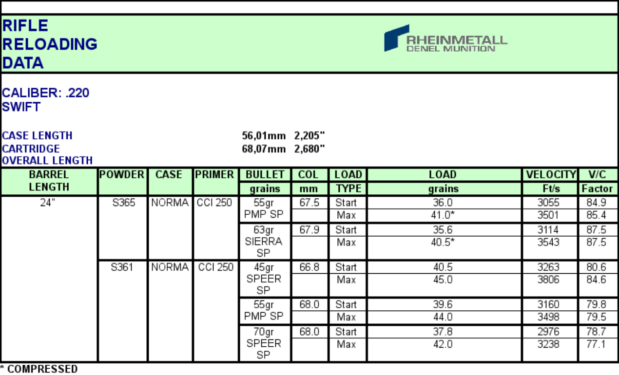 Somchem Rifle Reloading Data   .22 Hornet   .222 Remington   .223 Remington   .22-250-remington   .220 Swift   6mm Musgrave   6.5 x 55mm Swedish Mauser   6.5 x 57mm   .243 Winchester   .25-06 Remington   .264 Winchester   .270 Winchester   .308 Winchester   .30-06 Springfield   .300 H&H Magnum   .300 Winchester Magnum   .303 British   .375 H&H Magnum